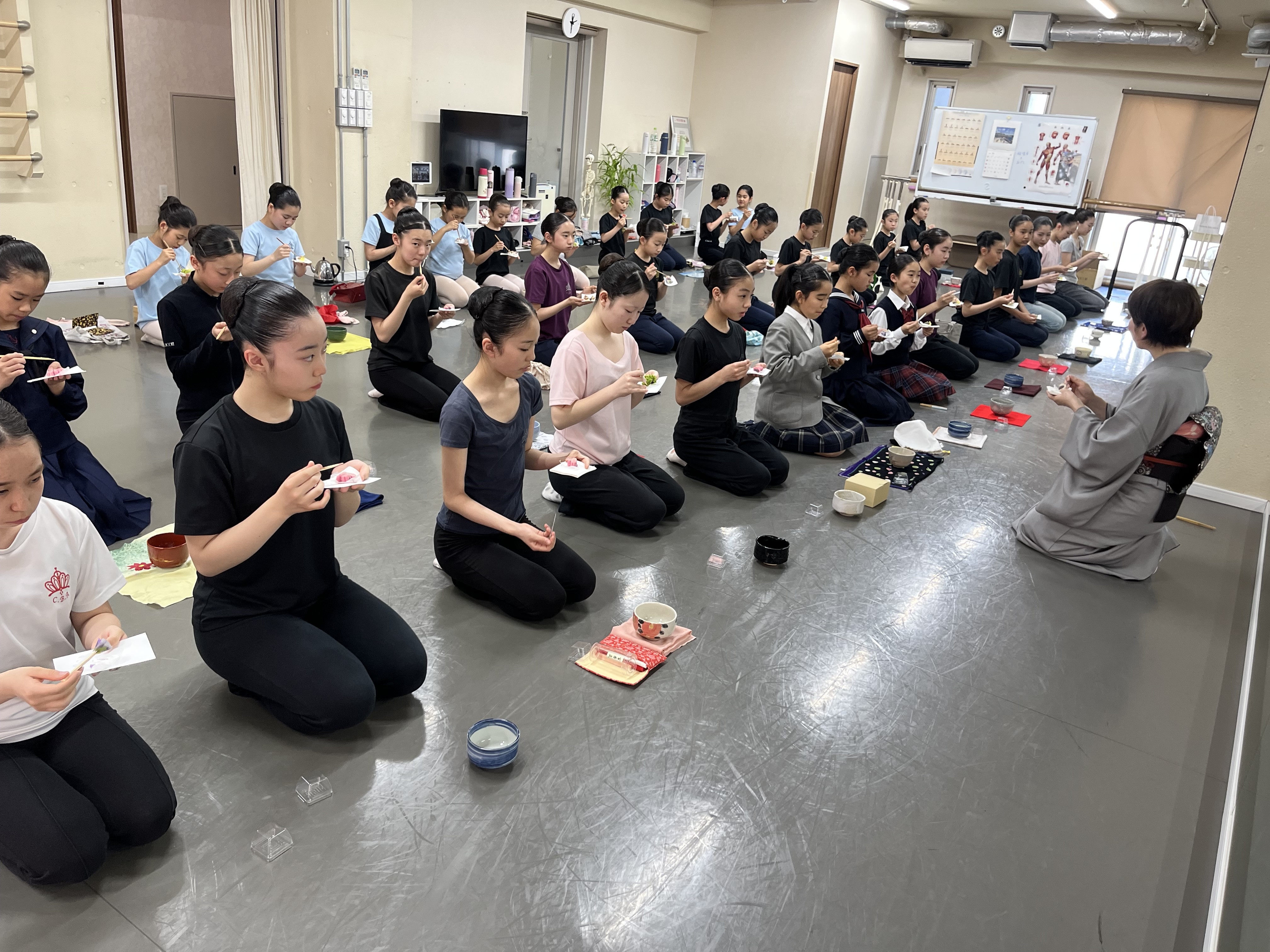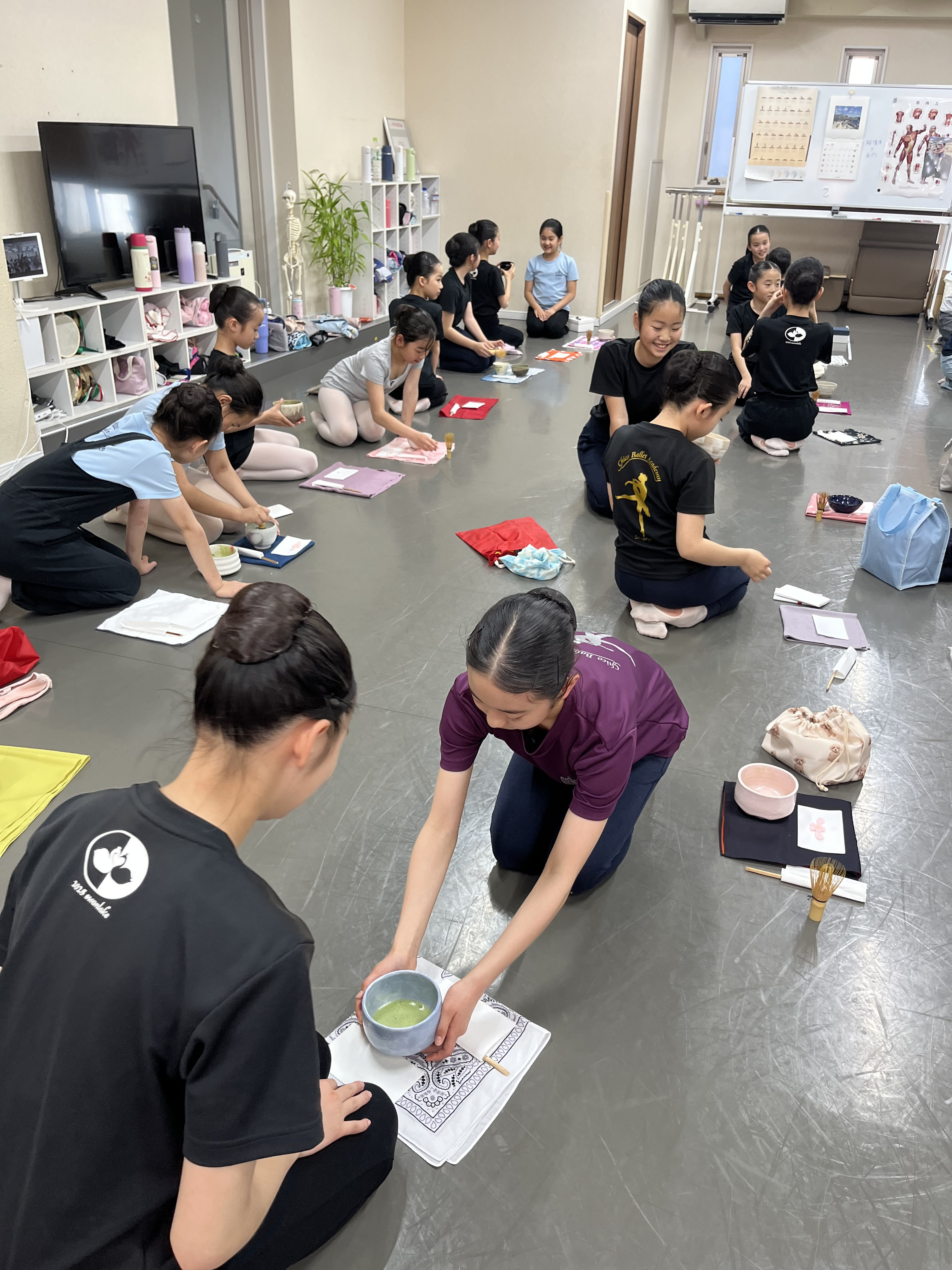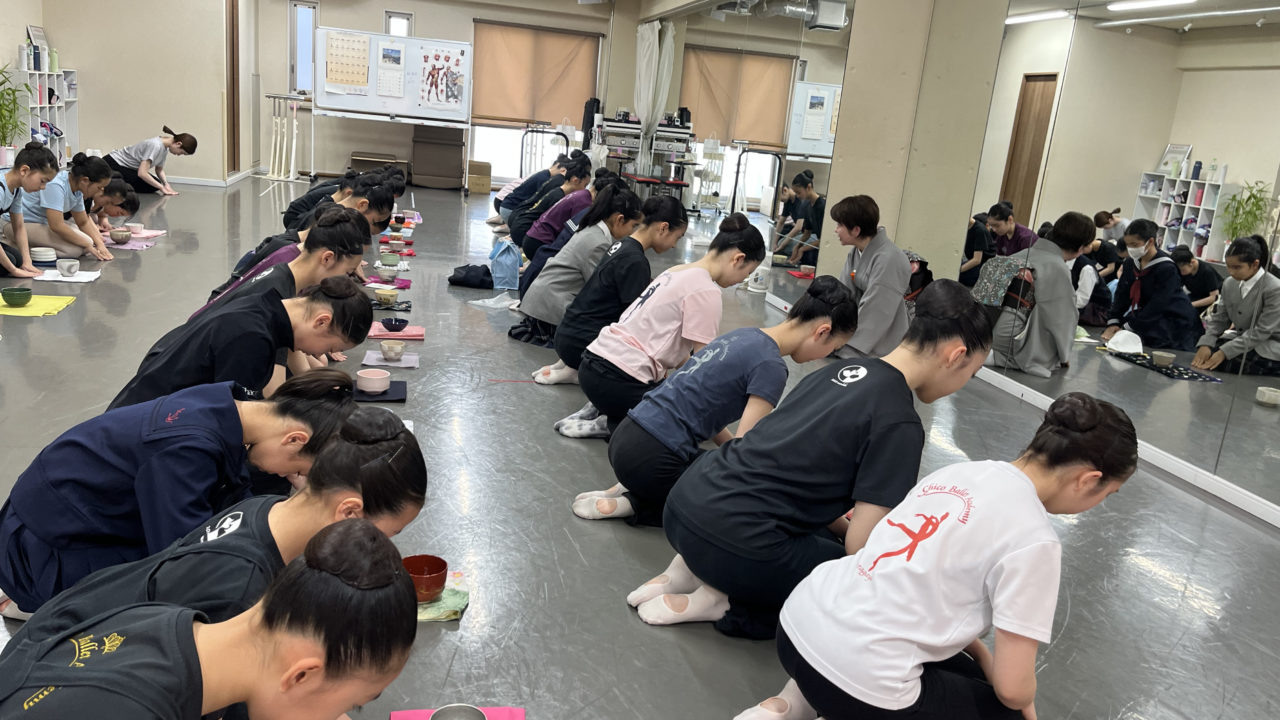 茶道の家元 三浦宗理先生をお迎えして日本人として日本の文化『茶道』のお稽古を頂きました。これから世界に羽ばたくにもまずは日本の文化を知ってから。日本の察する文化や手の使い方の作法がバレエと通ずる部分が随所にあり美しさの勉強になりました。これからも定期的に教わっていきます。